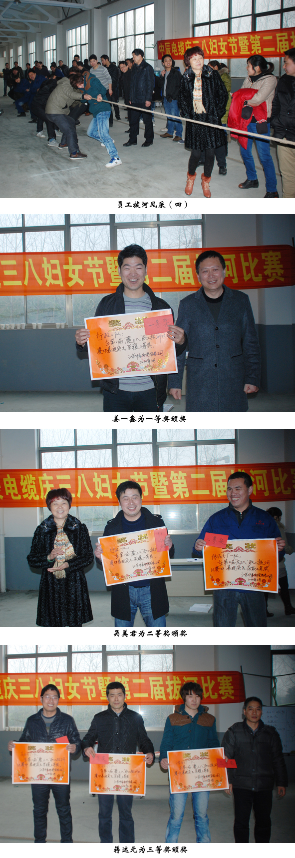 3月1日下午,在“三八”國際婦女節(jié)來臨之際,江蘇中辰電纜有限公司隆重舉行了慶“三八”婦女節(jié)暨第二屆拔河比賽。公司總經(jīng)理姜一鑫、工會主席吳美君、副總經(jīng)理徐積平和總經(jīng)理助理蔣達元親臨賽場并擔任比賽裁判員。