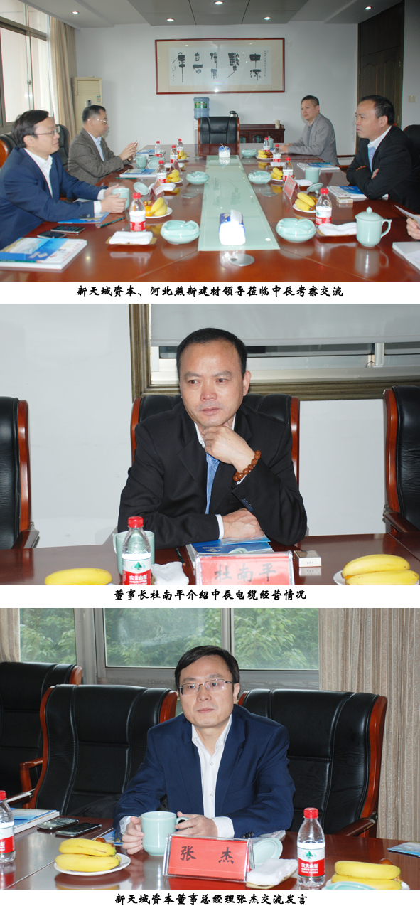 11月13日,新天域資本董事總經(jīng)理張杰、河北燕新建材有限公司董事長(zhǎng)王季文蒞臨中辰電纜考察交流,董事長(zhǎng)杜南平、總經(jīng)理姜一鑫及副總經(jīng)理徐積平熱情接待了來(lái)訪領(lǐng)導(dǎo)。