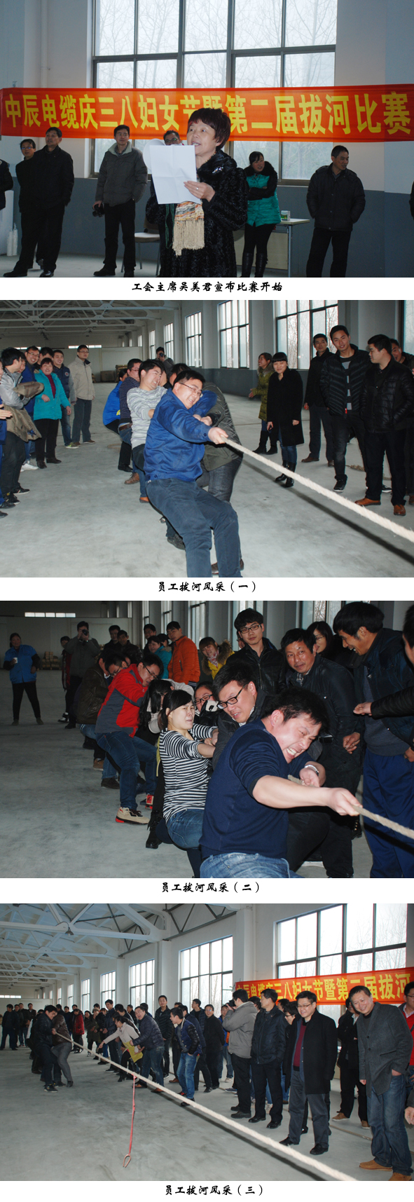 本次比賽是中辰電纜舉辦的第二屆拔河比賽,在慶祝即將到來的“三八”婦女節(jié)的同時,也增進了員工之間的交流與友誼,促進了和諧協(xié)作精神,增強了全公司員工的凝聚力和團隊意識,豐富了員工的業(yè)余生活。同時公司將繼續(xù)有計劃地安排風格多樣的比賽項目,不斷提高員工的身體素質(zhì)和團隊合作精神。